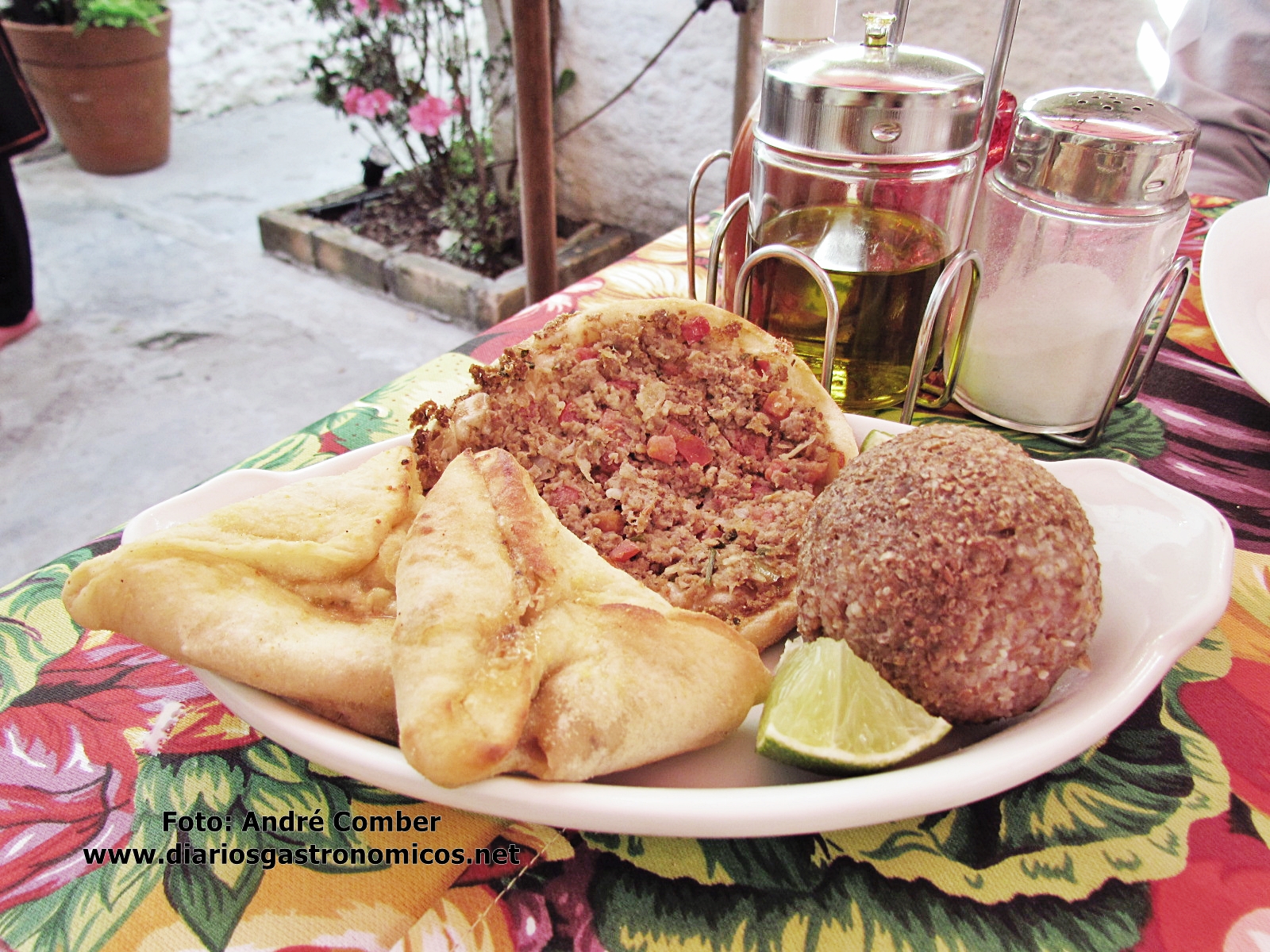 É a foto destaque deste texto, barquinhos de massa recheados com carne feitos um a um e ordenados em formato de flor. Além disso, provei os diferentes Quibes de Lentilha e Verde (ambos não levam carne); o quibe bola com recheio de nozes; o Sarmã de Folha de Uva e o Zeitli Sarmã (enrolado em folhas de couve). Sem contar as ótimas esfihas abertas.