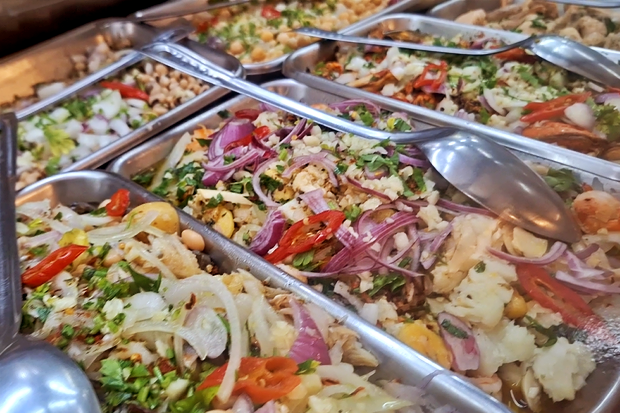 O balcão da Adega Pérola possui dezenas de opções de acepipes e é uma missão difícil decidir por onde começar. Sempre saio de lá feliz com o que provei, mas, ao mesmo tempo, com uma leve frustração por tudo o que não consegui experimentar. Frequento esse boteco há anos e, ainda assim, nunca dei conta de provar todas as opções disponíveis.