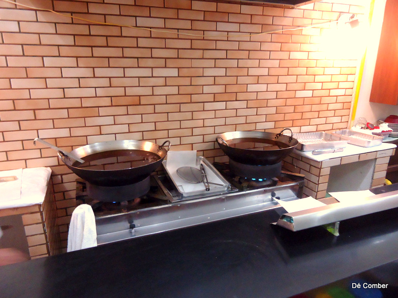 Não senti cheiro algum. As panelas com o óleo ficam bem defronte ao longo e confortável balcão. Foi justo onde sentei para estar mais perto da ação. Mesmo após os primeiros movimentos, o sistema de exaustão me pareceu eficiente.