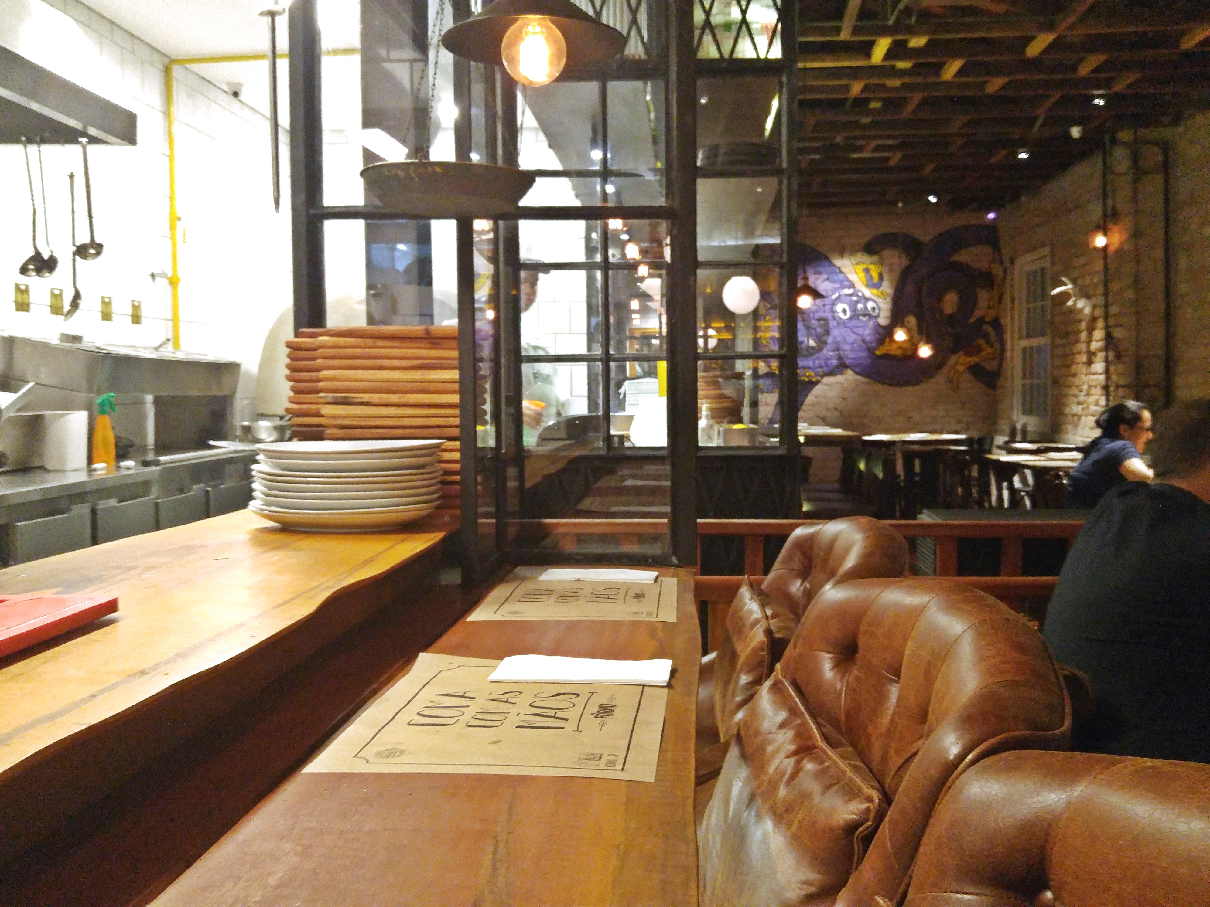 O ambiente moderno e bonito segue o padrão do Holy, com uma pegada urbana e industrial. As duas casas foram concebidas, inclusive, pelo mesmo arquiteto, Herbert Holdefer. Ele também assina outros destinos gastronômicos relevantes em Sampa já citados por aqui tais como a Casa do Porco e o Cozinha 212.