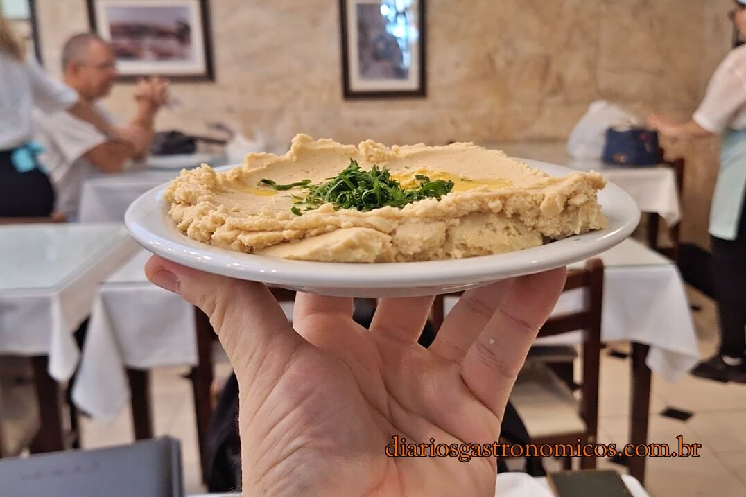 Para começar, pedi uma indispensável porção de Homus (Pasta de grão-de-bico com tahine R$ 39,00). Sempre tive um apreço pessoal por esse homus e acho que pasta de grão de bico é muito isso, a melhor de certa maneira é aquela que temos um apego. Seja por ser uma receita familiar, ou servida em um lugar que íamos quando criança, como nesse caso.