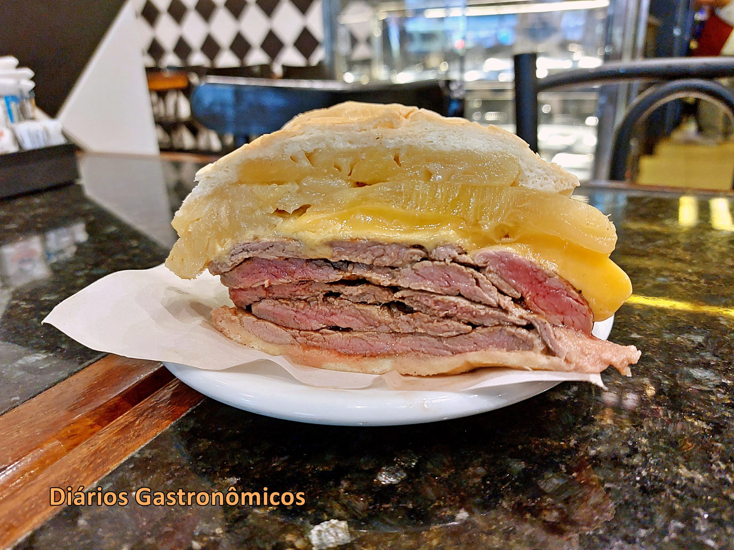 Sempre tive dúvida sobre qual desses lanches pedir. Acabei escolhendo o Filé com Queijo e Abacaxi. Carne mal-passada, como manda a tradição, servida no pão com fatias grossas de queijo. O abacaxi fecha perfeitamente o conjunto. Muito bom!