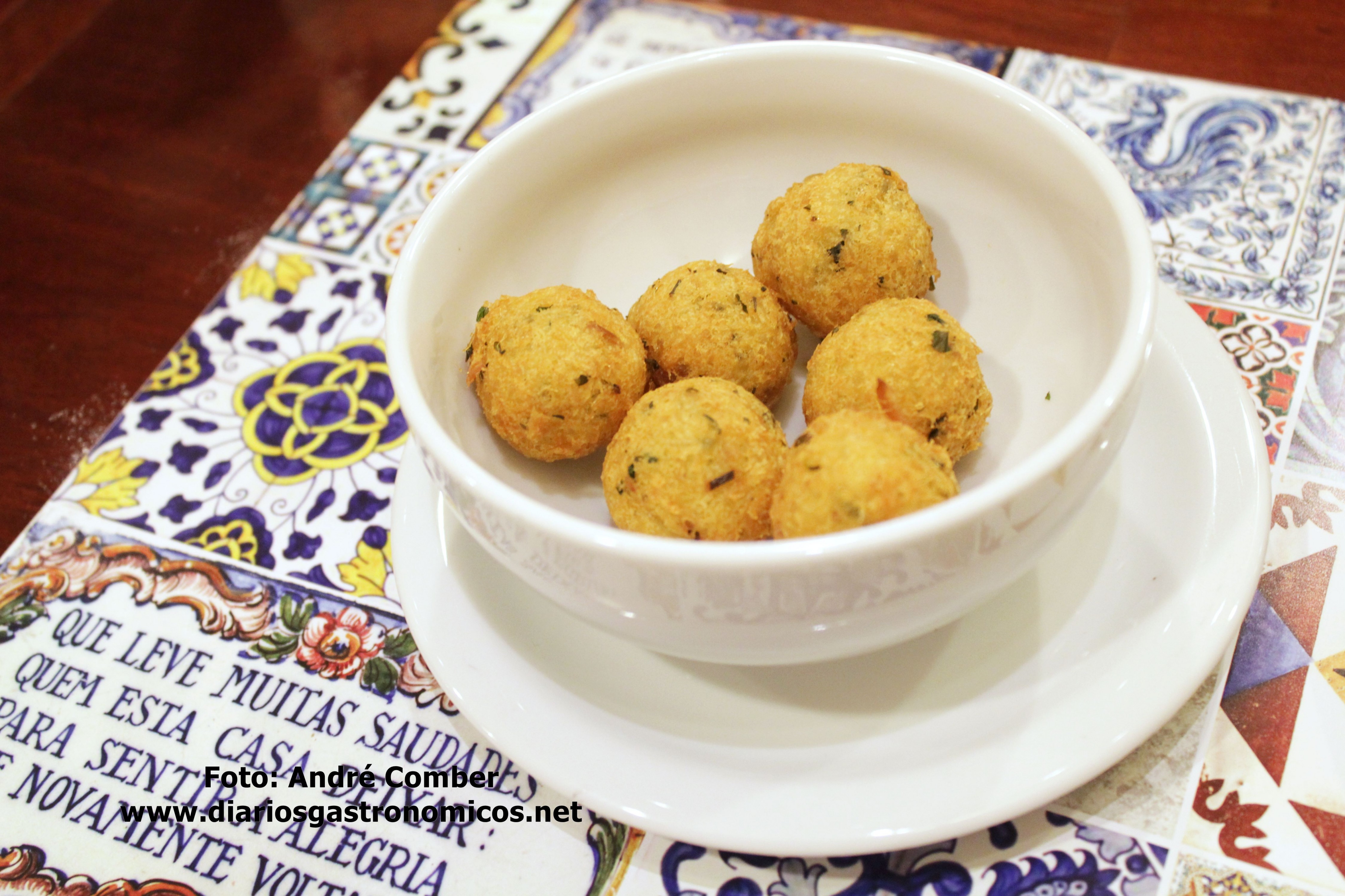 Já no local, e devidamente sentados para o almoço, não dispensamos uma porção inicial de Bolinhos de Bacalhau. O restaurante serve uma versão pequena, redondinha e perfeita! Dá vontade de ficar pedindo outras levas indefinidamente. Creio que seja um dos melhores bolinhos da cidade.