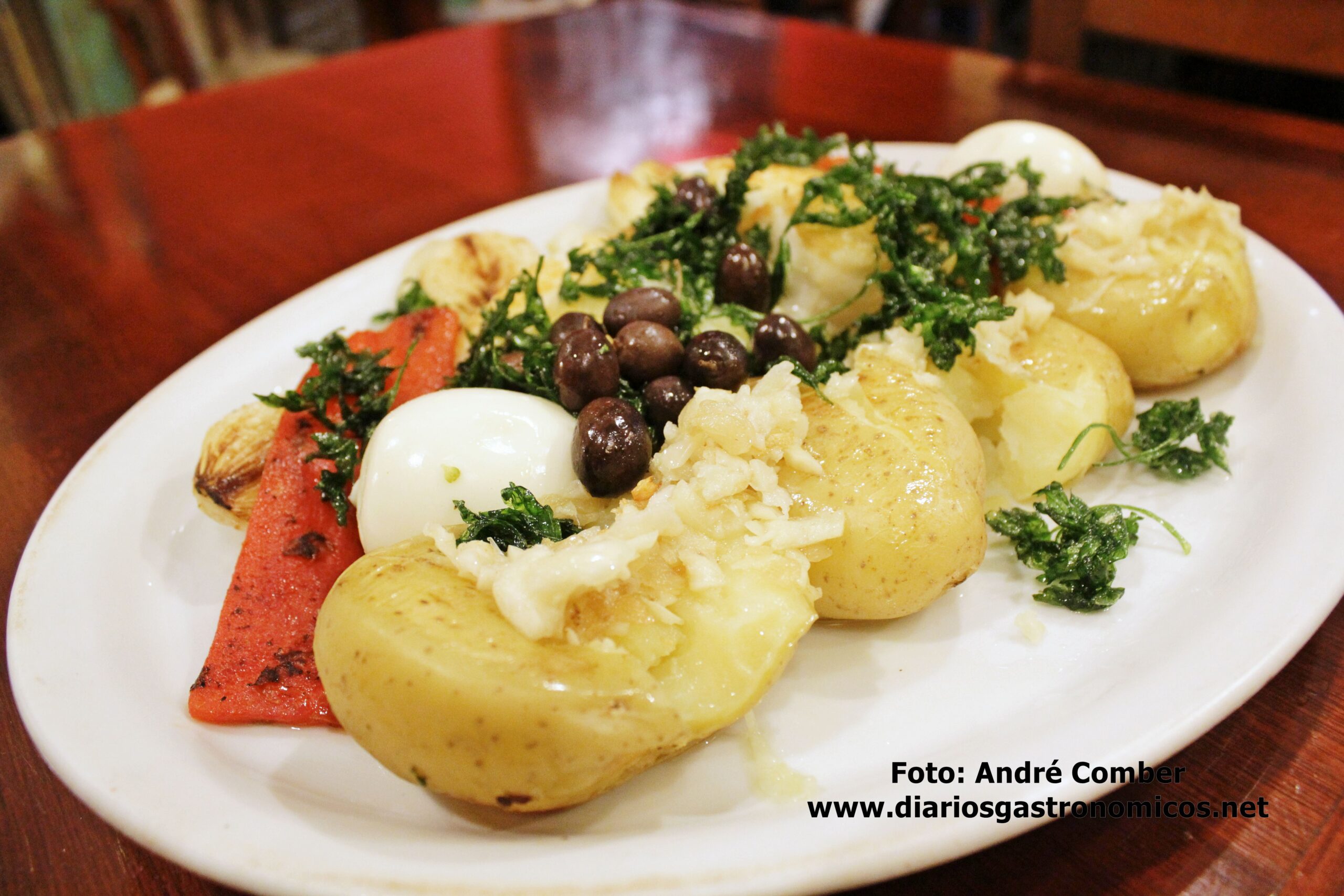 Um dos pratos do dia em destaque num quadro grande na parede era o Polvo à Moda. Eu tenho verdadeira obsessão por polvo, mas consegui resistir à tentação e segui firme no plano inicial de dividir com a Silvia um prato de bacalhau.