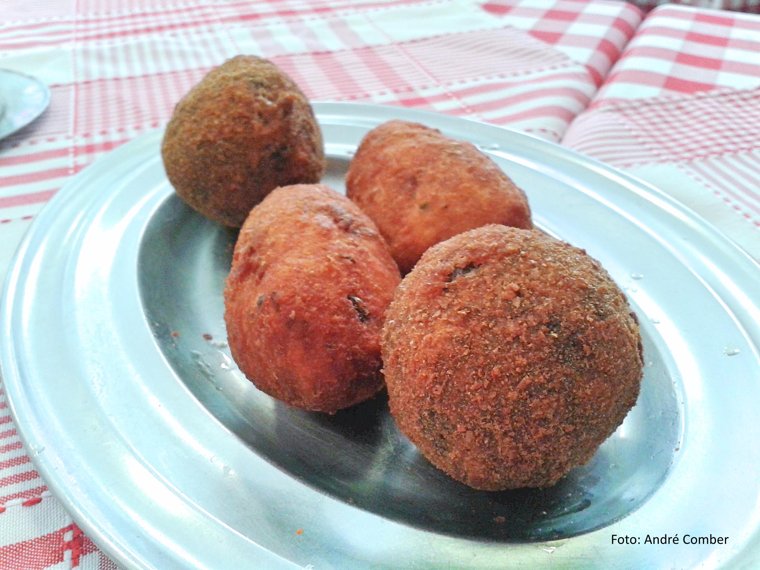 Os bolinhos de carne, crocantes e bem fritos, são a marca registrada do local. Diria até imperdíveis para quem passa por ali. Mas recomendo também que se experimente os bolinhos de bacalhau, que estão num bom nível.