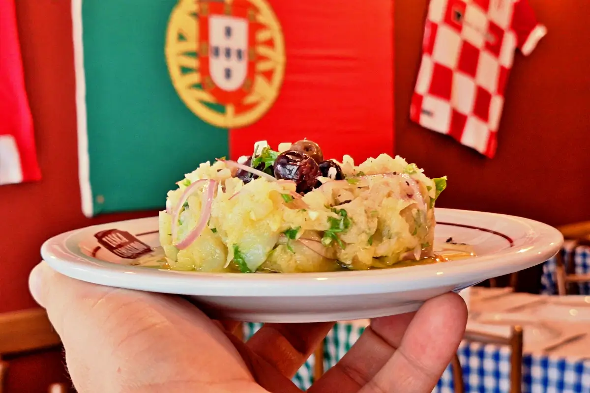 Minha intenção era seguir com um Polvo à Vinagrete, mas eles só iam produzir para o turno da noite e ainda estava na hora de almoço do sábado. No entanto, foi uma boa oportunidade de pedir outro petisco português que amo, a Punheta de Bacalhau.